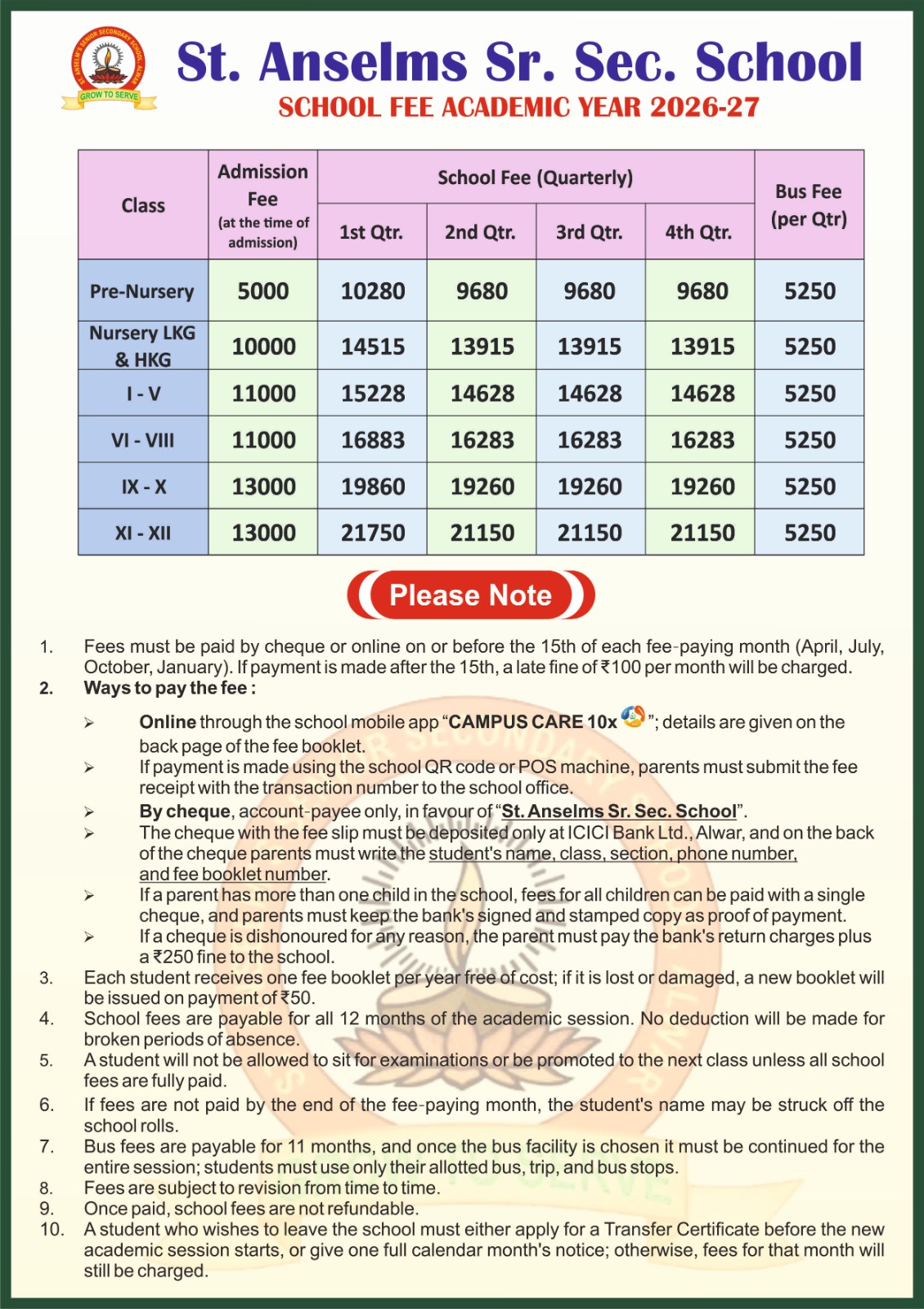 SCHOOL FEE FOR THE SESSION 2026-27 Click here for details